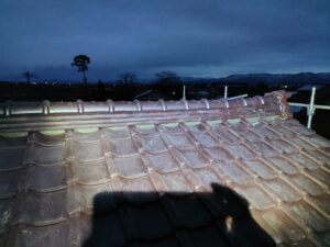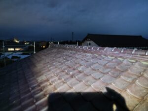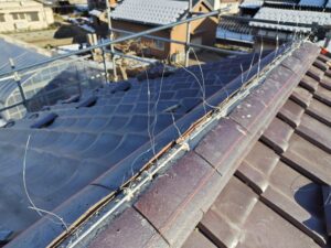 安田瓦で茜色にて工事させて頂きました工事途中季節柄雪が積もっちゃって写真が撮れませんでした棟金具に鉄筋としっかり補強いたしました