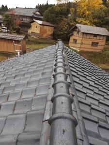 新発田市で瓦屋根リフォーム工事です250526154504134高圧セメント瓦葺きの屋根から安田瓦へリフォームです既存瓦を撤去して野地補強250809090509812250730135257923棟