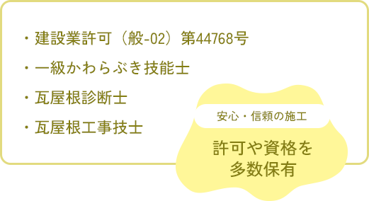 資格保有者による工事は、これらような強みをもたらします。「どこに頼んでも同じ」ではないのが屋根工事。